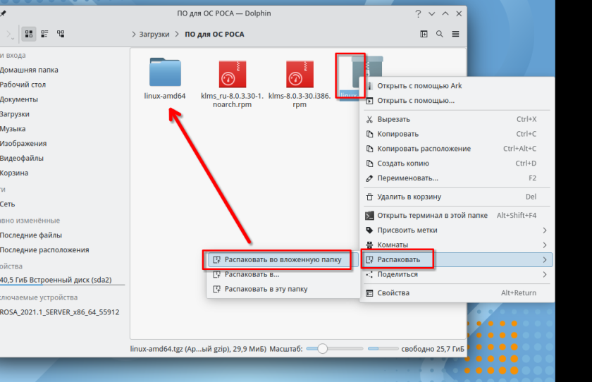 2. Необходимо распаковать архив с КриптоПро «linux-amd64.tgz» во вложенную папку.