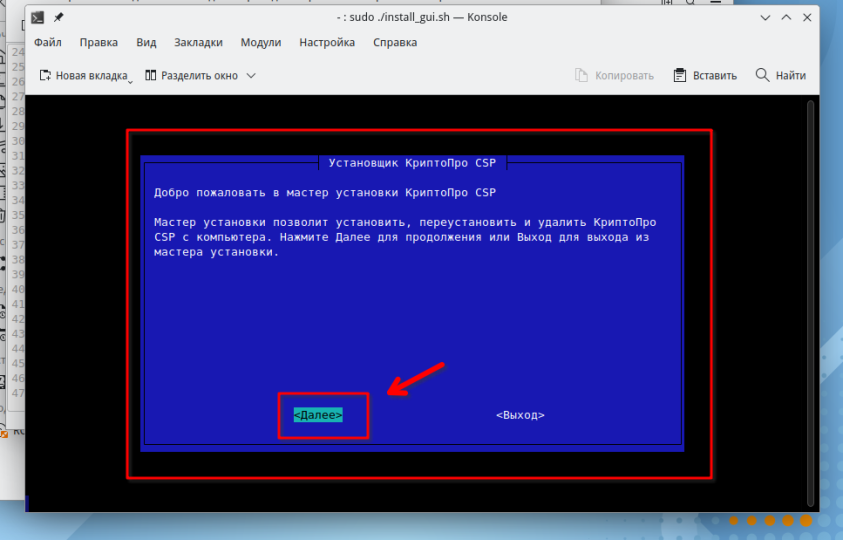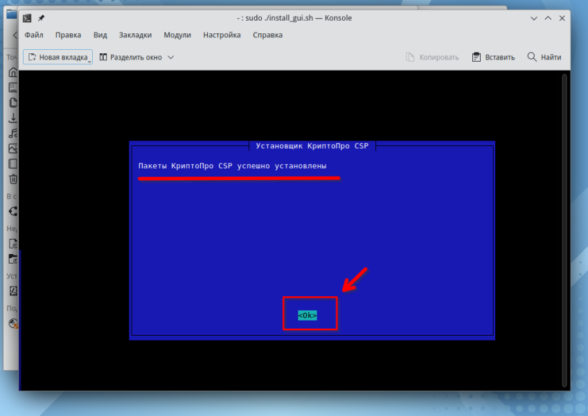 5. Далее приступаем к установке непосредственно программы. Для этого запускаем скрипт установки командой sudo ./install_gui.sh