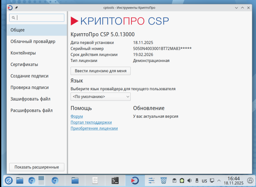 Установка КриптоПРО CSP 5 в РОСА Хром (на примере версии 12.7)